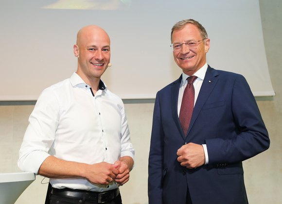 Landeshauptmann Thomas Stelzer gratuliert Christopher Drexler zum Landeshauptmann